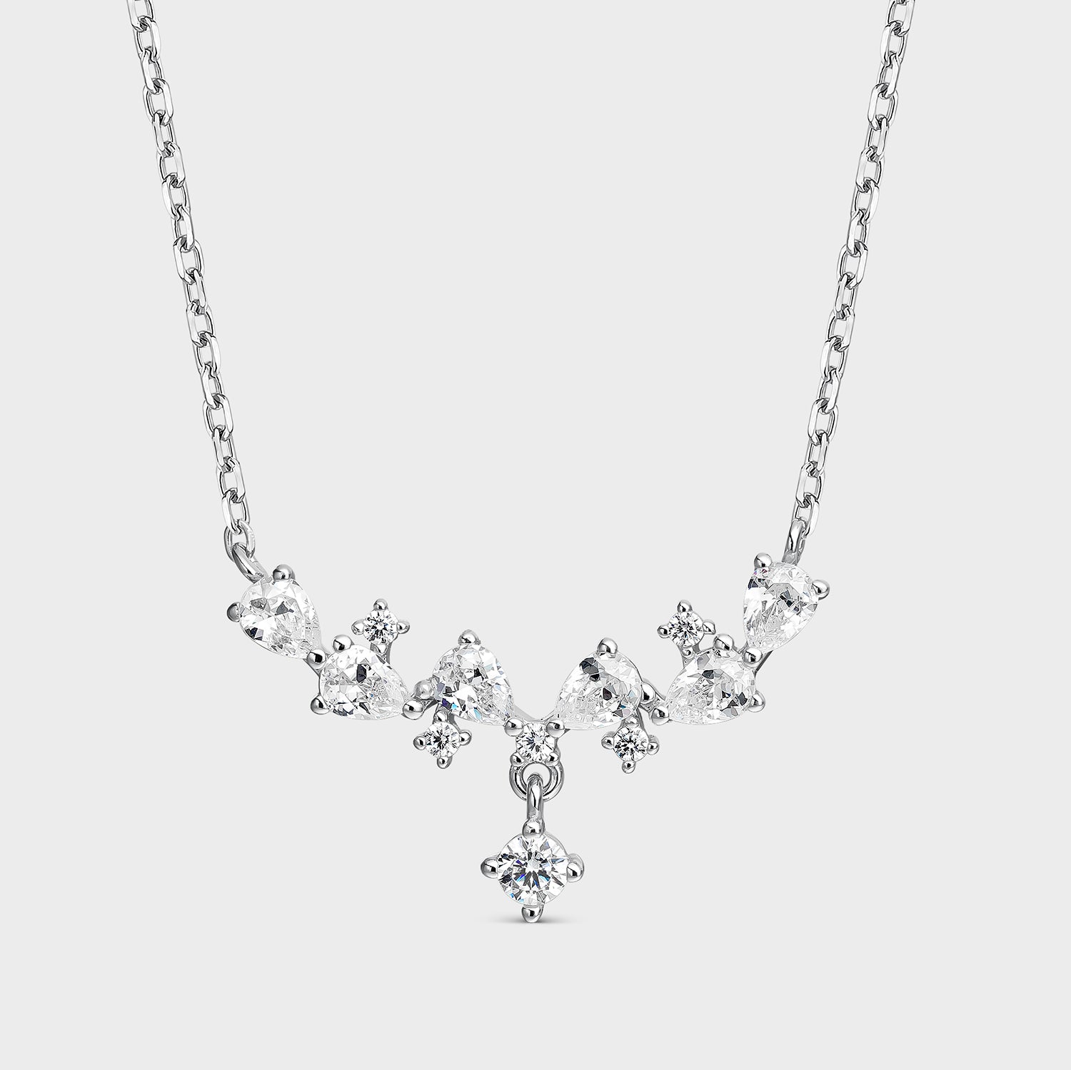 Collar en Plata de Ley 925 tipo tiara con circonitas redondas y en forma de pera.