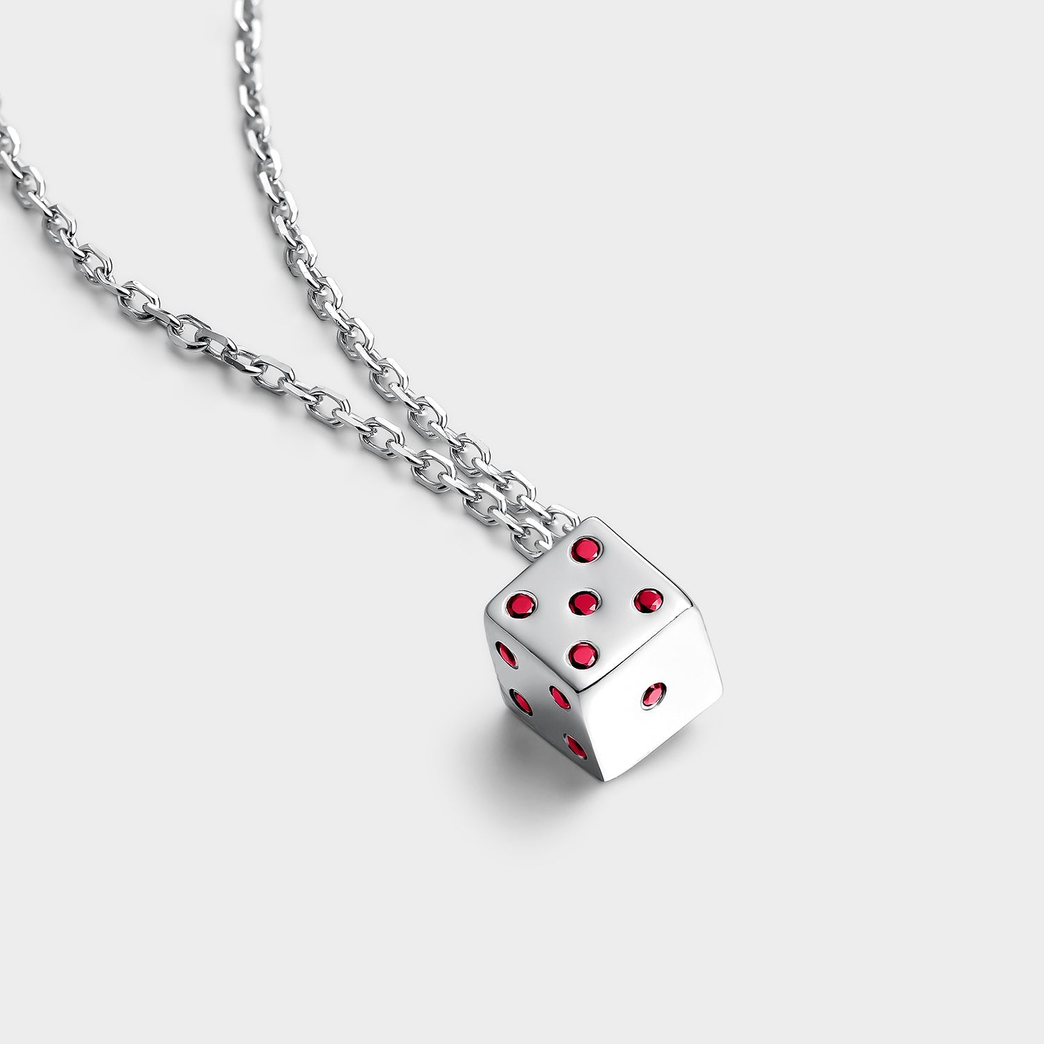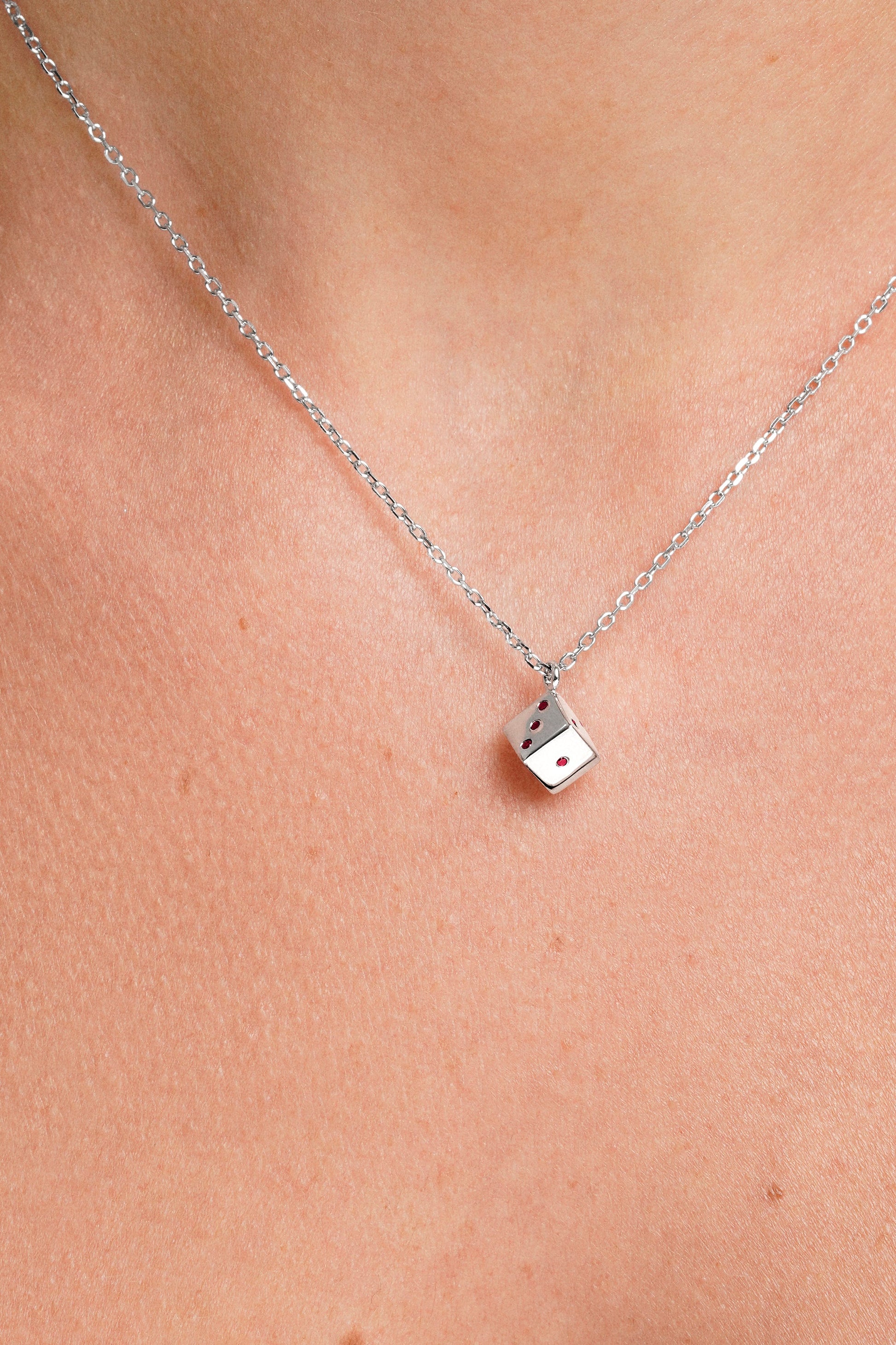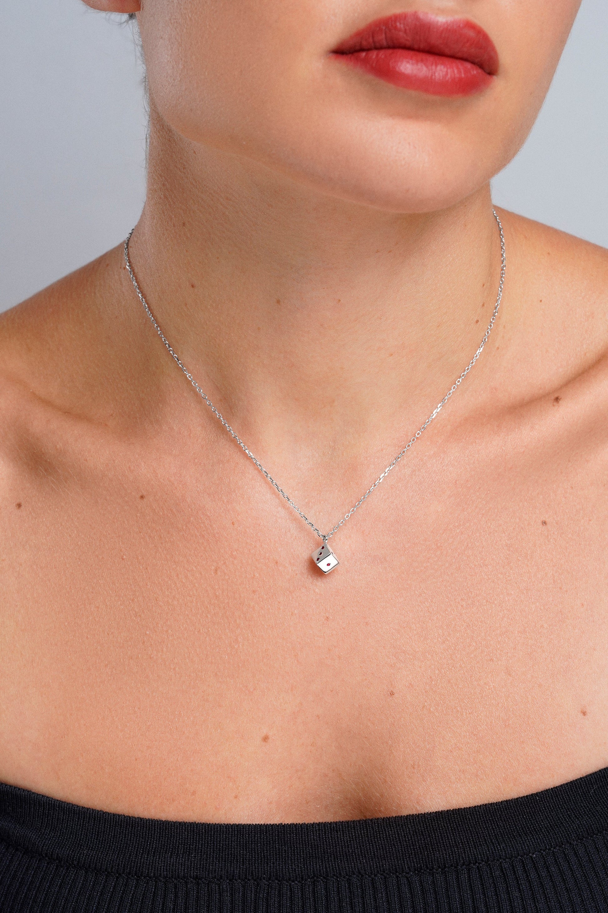 Collar de plata con un diseño de dado y circonitas negras. Añade un toque de elegancia y sofisticación a tu look con este collar único. ¡Haz una declaración audaz con este collar impresionante!
