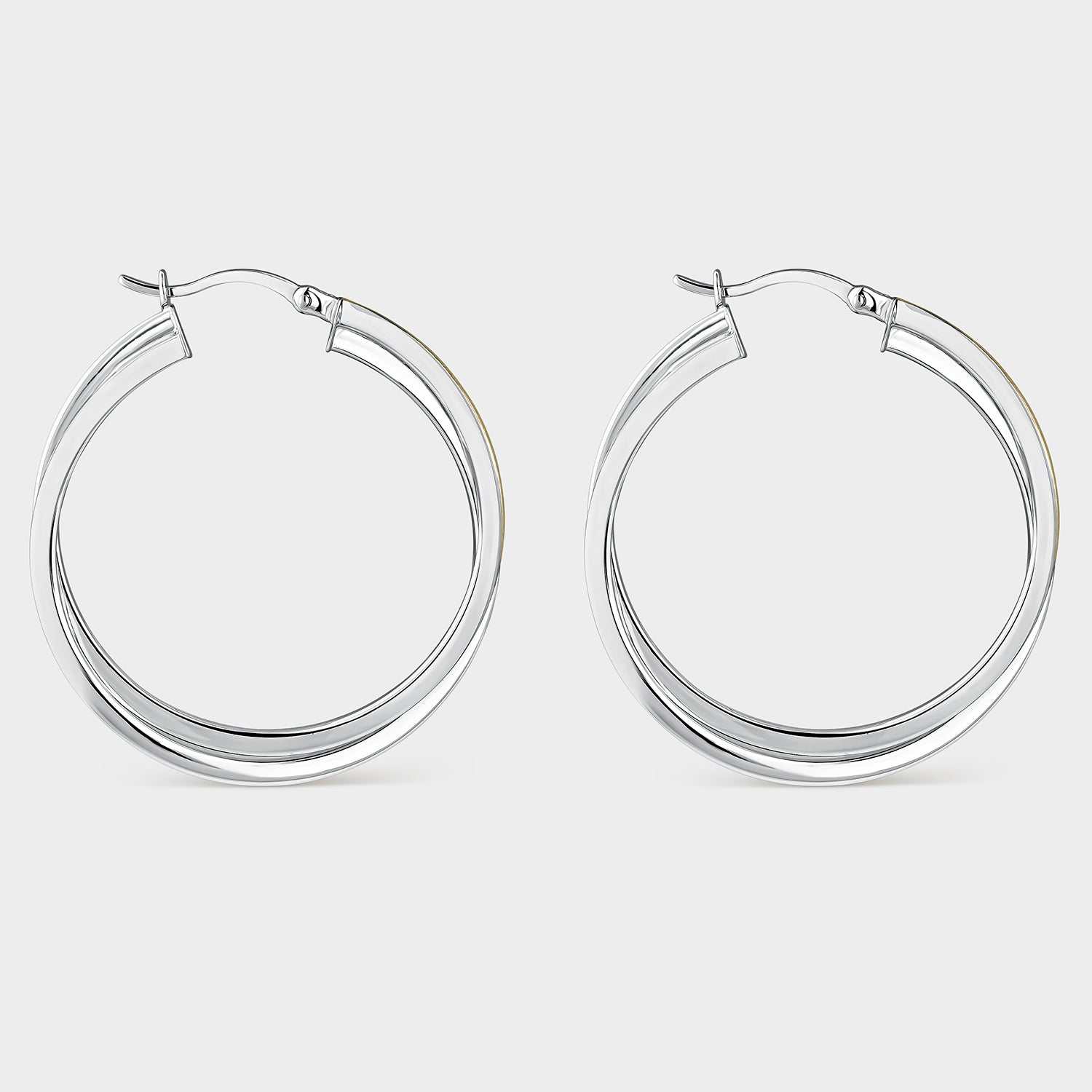 Entdecken Sie unsere zweifarbigen, überlappenden Creolen, ein außergewöhnlicher Vorschlag. Hergestellt aus zweifarbigem Silber mit einem Effekt überlappender Ringe, der ihnen eine einzigartige und originelle Note verleiht. Ein gelbvergoldeter Creolen mit matter Textur und ein weiterer silberner Creolen bilden einen optisch attraktiven und raffinierten Kontrast. Mit einem Durchmesser von 35 mm sind sie die perfekte Ergänzung zu jedem Look, sowohl tagsüber als auch abends. Langlebig und widerstandsfähig, damit Sie lange Freude daran haben.