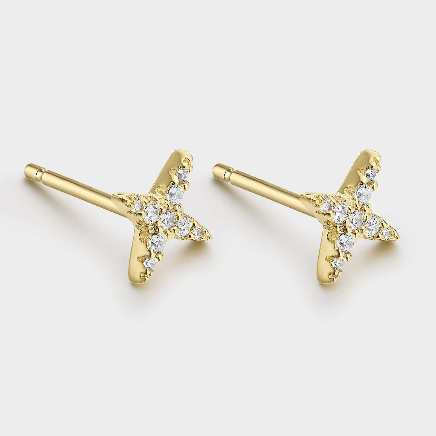 Die Aspa-Ohrringe aus vergoldetem Silber mit Zirkonen sind ein elegantes und raffiniertes Schmuckstück. Sie bestehen aus gelbvergoldetem Sterlingsilber und haben eine Kreuzform, die ihnen eine originelle und moderne Note verleiht. Sie sind mit weißen Zirkonen verziert und sorgen für einen spektakulären Glanz. Durch den Druckknopfverschluss sind sie angenehm zu tragen. Sie werden in einer eleganten Geschenkbox geliefert, perfekt, um jemand Besonderen zu überraschen.