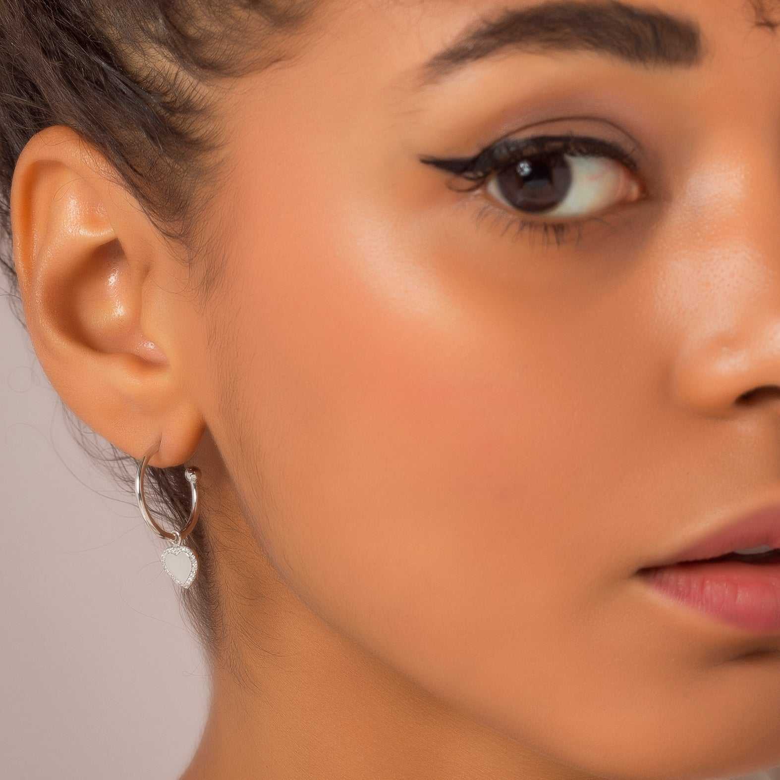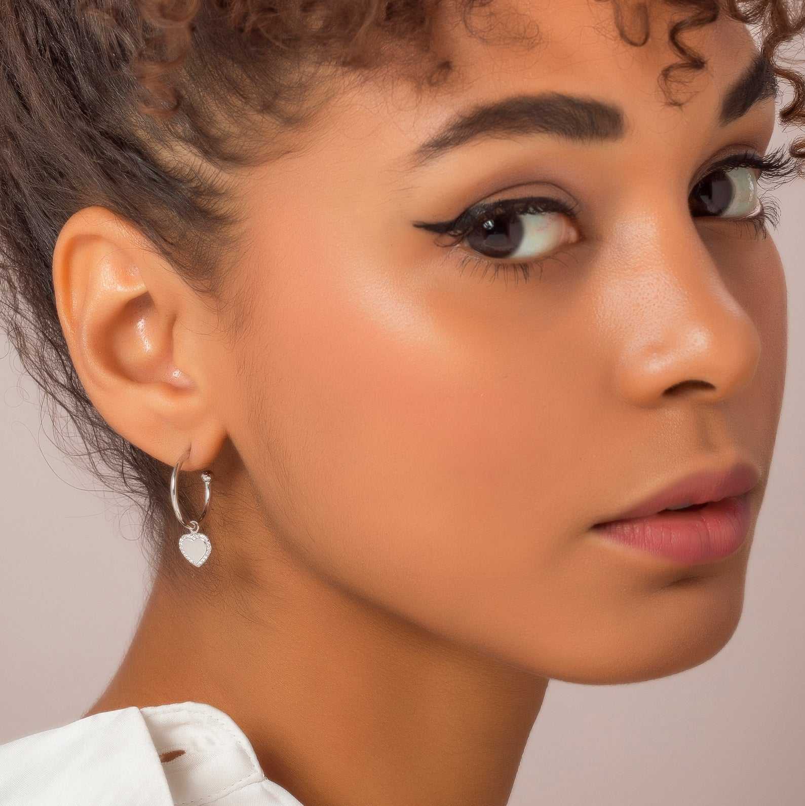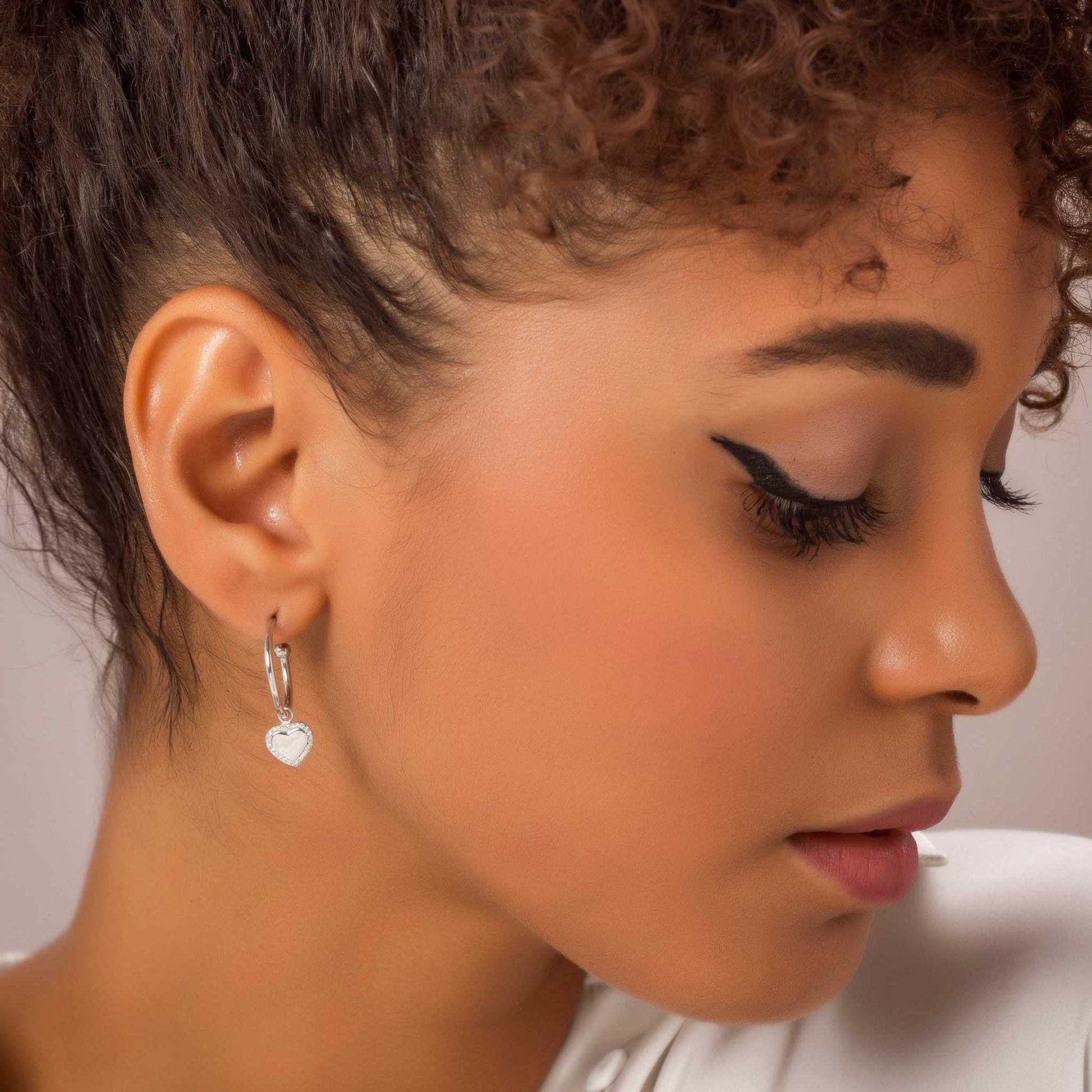 Die Cube Silver Heart Creolen sind ein hochwertiges Schmuckstück aus 925er Sterlingsilber und einem geometrischen Design, das urbane Eleganz und Modernität vereint. Sie haben einen herzförmigen Anhänger, der mit Zirkonen verziert ist und für Glanz und Raffinesse sorgt. Durch ihre Größe von 16 mm sind sie ideal für jeden Anlass. Eine perfekte Option zum Verschenken oder zur Ergänzung Ihrer Schmuckkollektion.