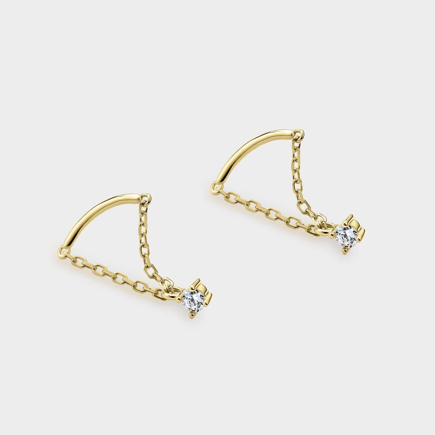 Gelbvergoldete Silberohrringe mit gebogenem Balkenmotiv mit Gliederkette und weißem Zirkonia-Anhänger