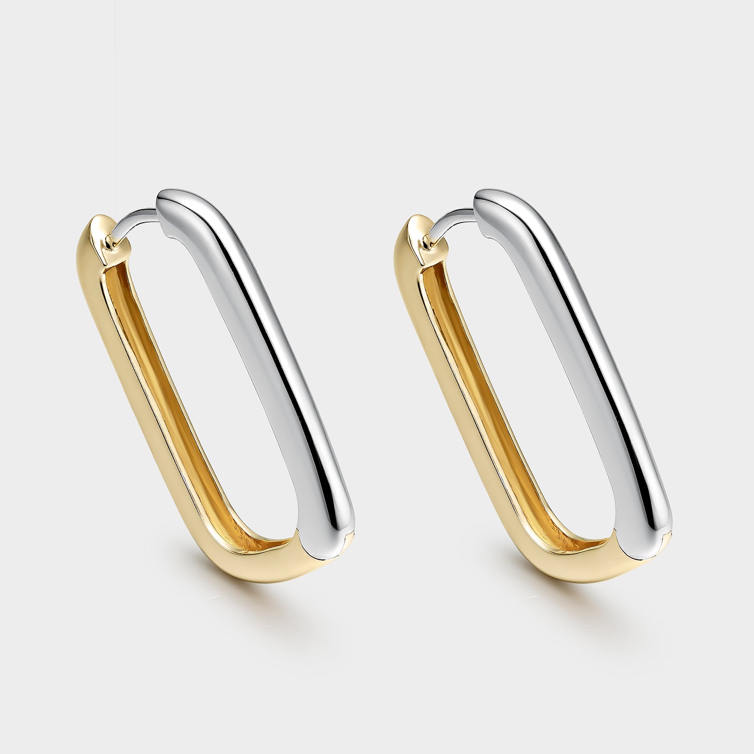 Desata tu audacia con estos pendientes de plata bicolor reversibles de 26,5mm. Su diseño versátil te permite ponértelos del lado dorado o plateado según el look o la ocasión. Perfectos para quienes no temen destacar con estilo único y sofisticado.
