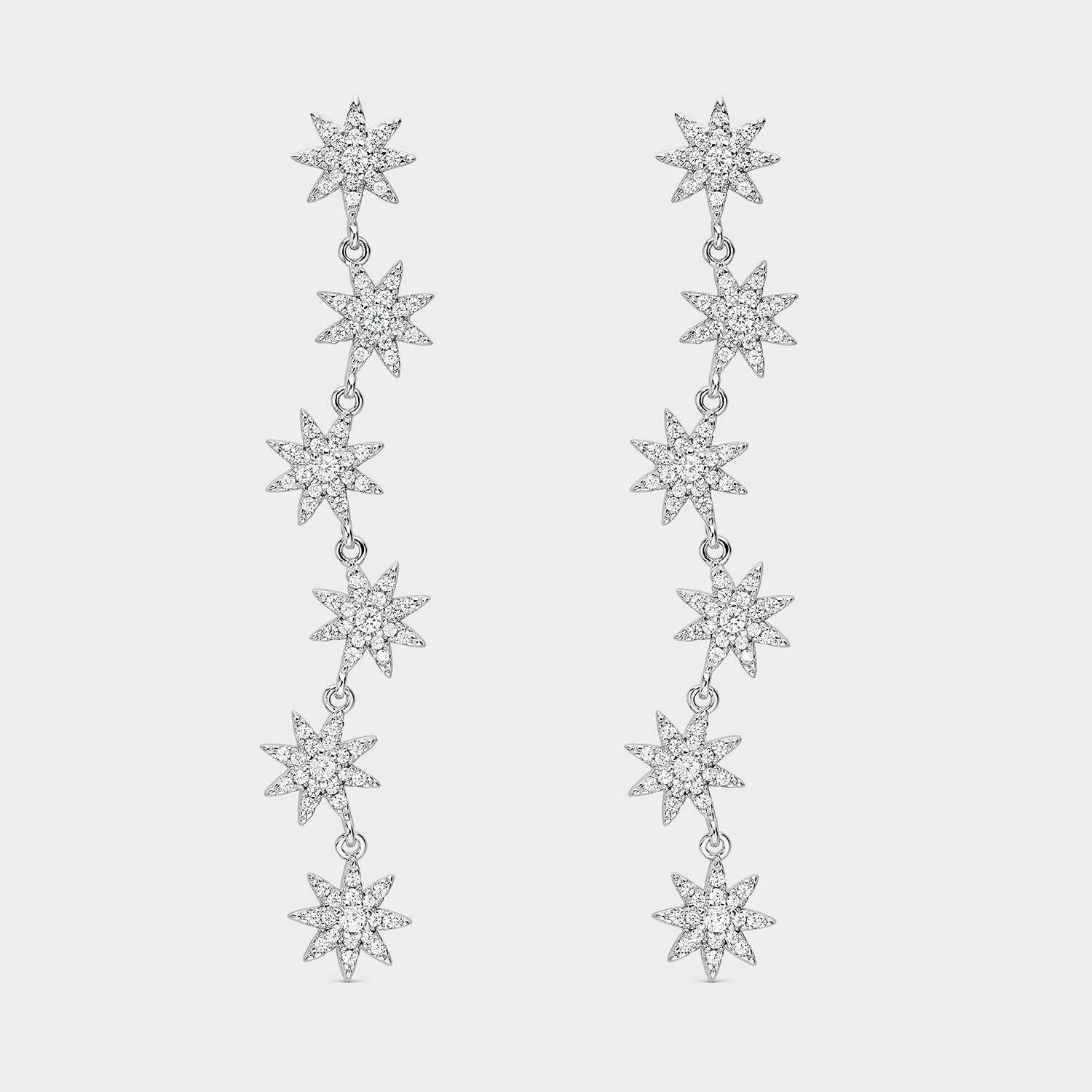 Die langen silbernen Blumenohrringe mit weißen Zirkonen sind ein elegantes und raffiniertes Schmuckstück. Entworfen mit einer Clusterform aus Blumen, die zart an Ihrem Ohr hängen und ihnen einen femininen und zarten Look verleihen. Hochwertiges Silber sorgt für Langlebigkeit und Verschleißfestigkeit, während weiße Zirkone für Glanz und Leuchtkraft sorgen. Sie eignen sich perfekt für jeden Anlass und lassen sich ideal mit jedem Kleidungsstil kombinieren.