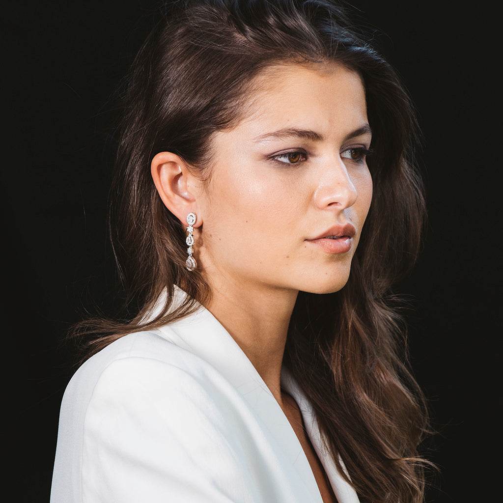 Wenn Sie auf der Suche nach eleganten und raffinierten Ohrringen sind, sind diese langen ovalen Ohrringe aus Silber und weißen Zirkonen die perfekte Wahl. Sie haben ein modernes und zeitloses Design, bestehen aus Sterlingsilber und verfügen über ovale Motive, die mit weißen Zirkonen verziert sind, die für einen spektakulären Glanz sorgen. Seine ovale Form ist schmeichelhaft und passt sich jedem Gesichtstyp an. Darüber hinaus ist seine Länge ideal für besondere Anlässe.
