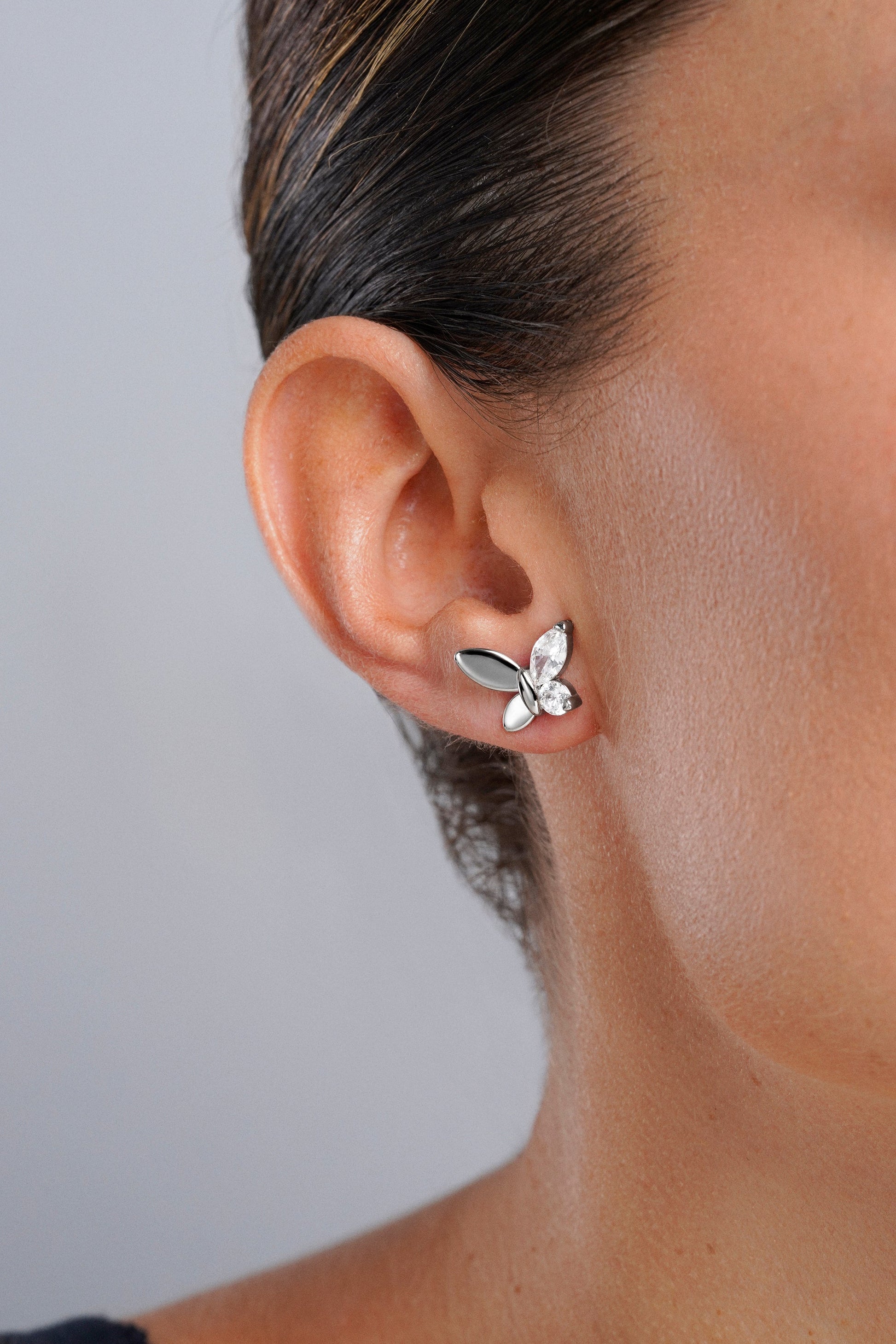 Descubre la belleza y elegancia de estas mariposas plateadas con una exquisita circonita en forma de ala. ¡Lúcelas con orgullo y eleva tu estilo con su encanto único! ¡No hay nada como la exótica combinación de plata y circonitas en estos pendientes de pin de mariposa!