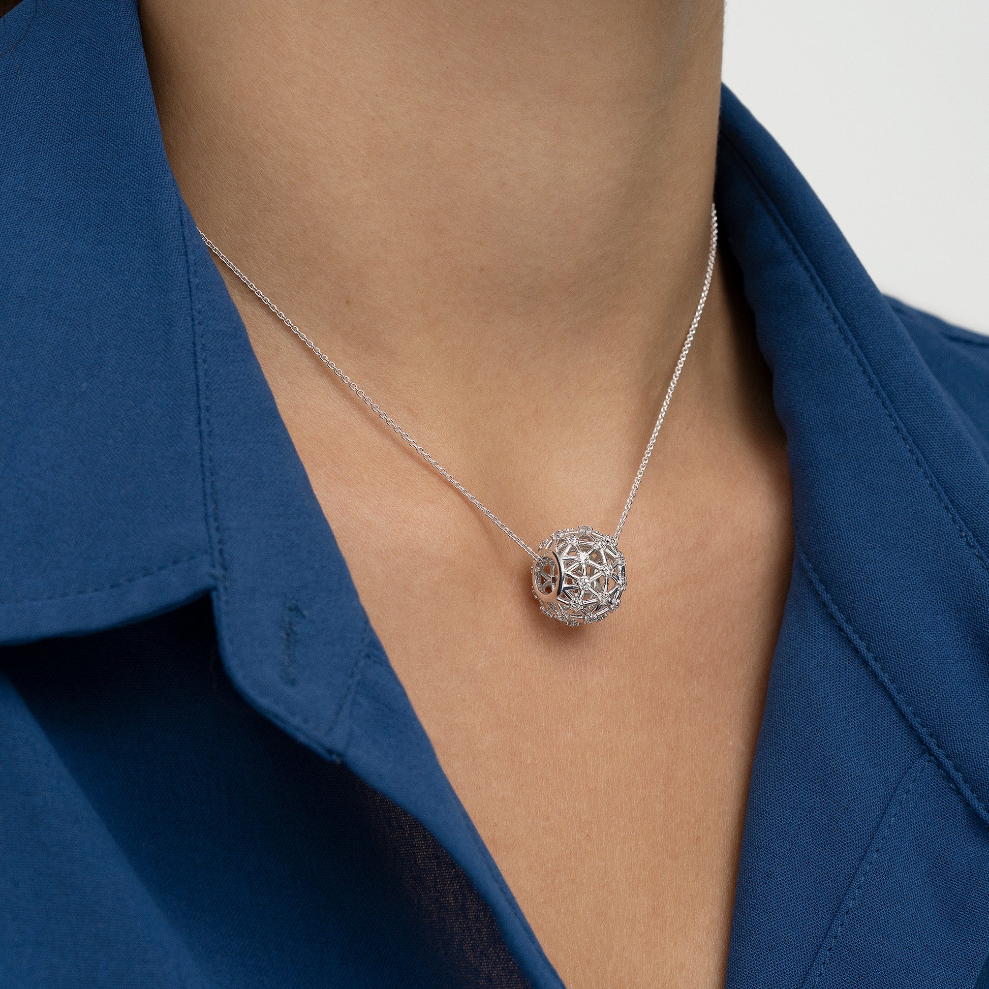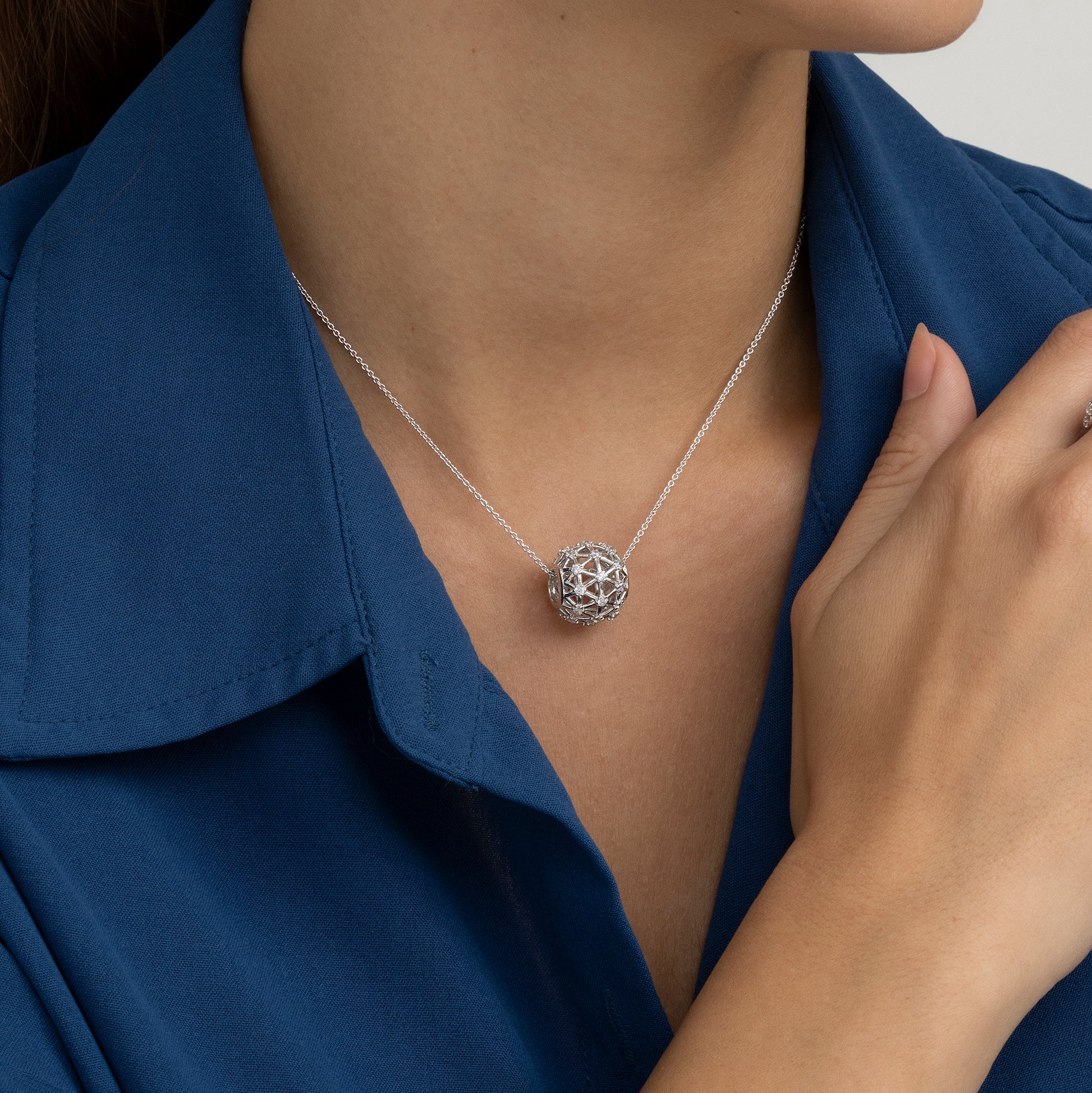 Collar en Plata de Ley 925 y circonitas dispuestas en su colgante esférico "galaxia".