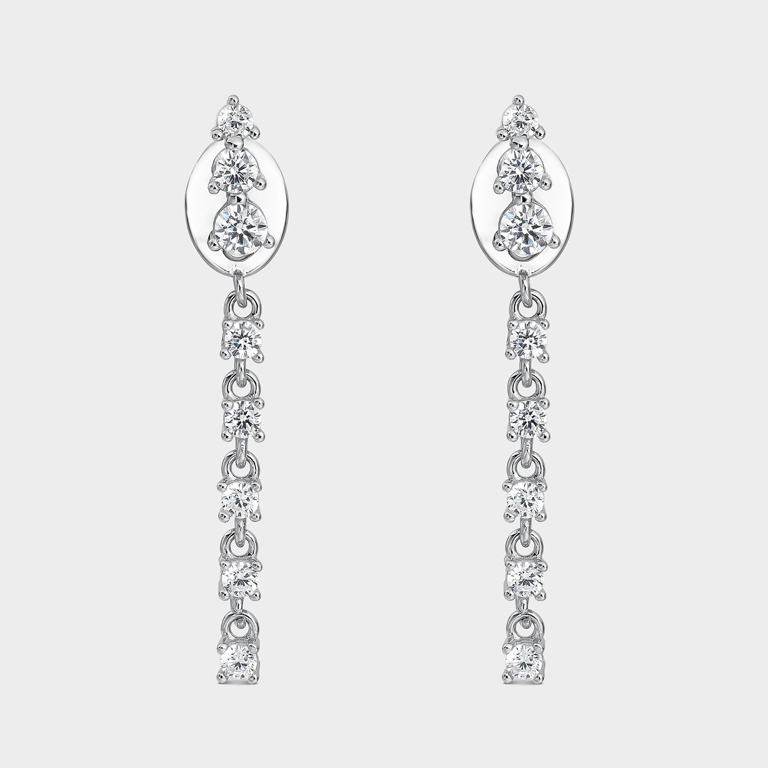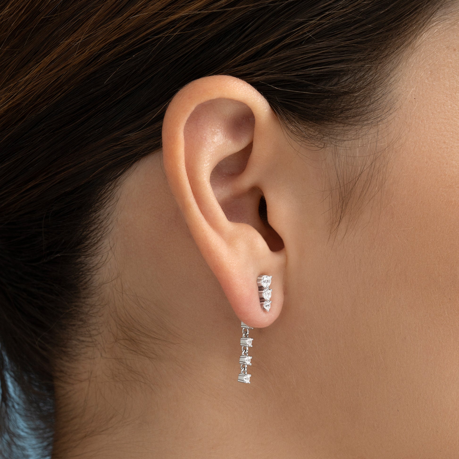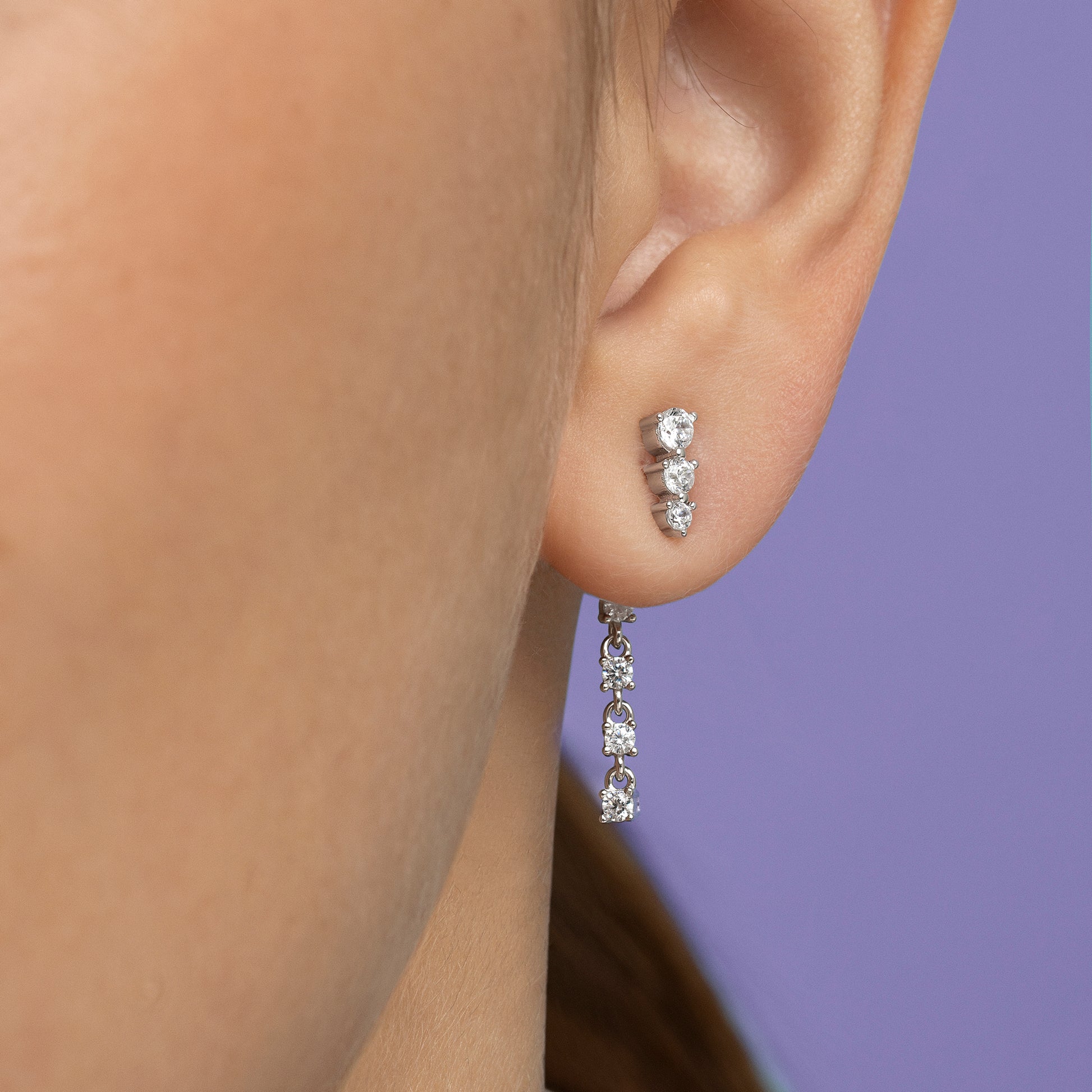 Pendientes en Plata de Ley 925 cascada de circonitas desmontables. Su perno tiene tres alturas para que los lleves a tu medida, también puedes retirar la parte larga cuando quieras y quedarte con un también elegante pendiente de botón.