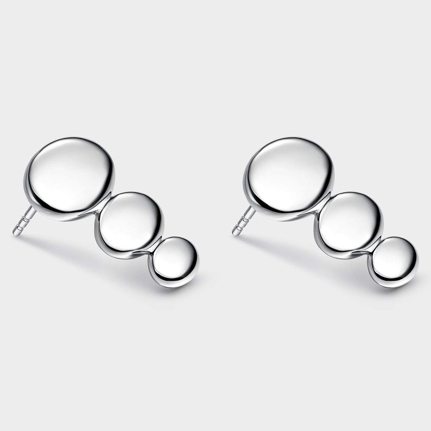 Descubre la belleza y elegancia de estos pendientes de plata en cascada con tres óvalos de diferentes tamaños.