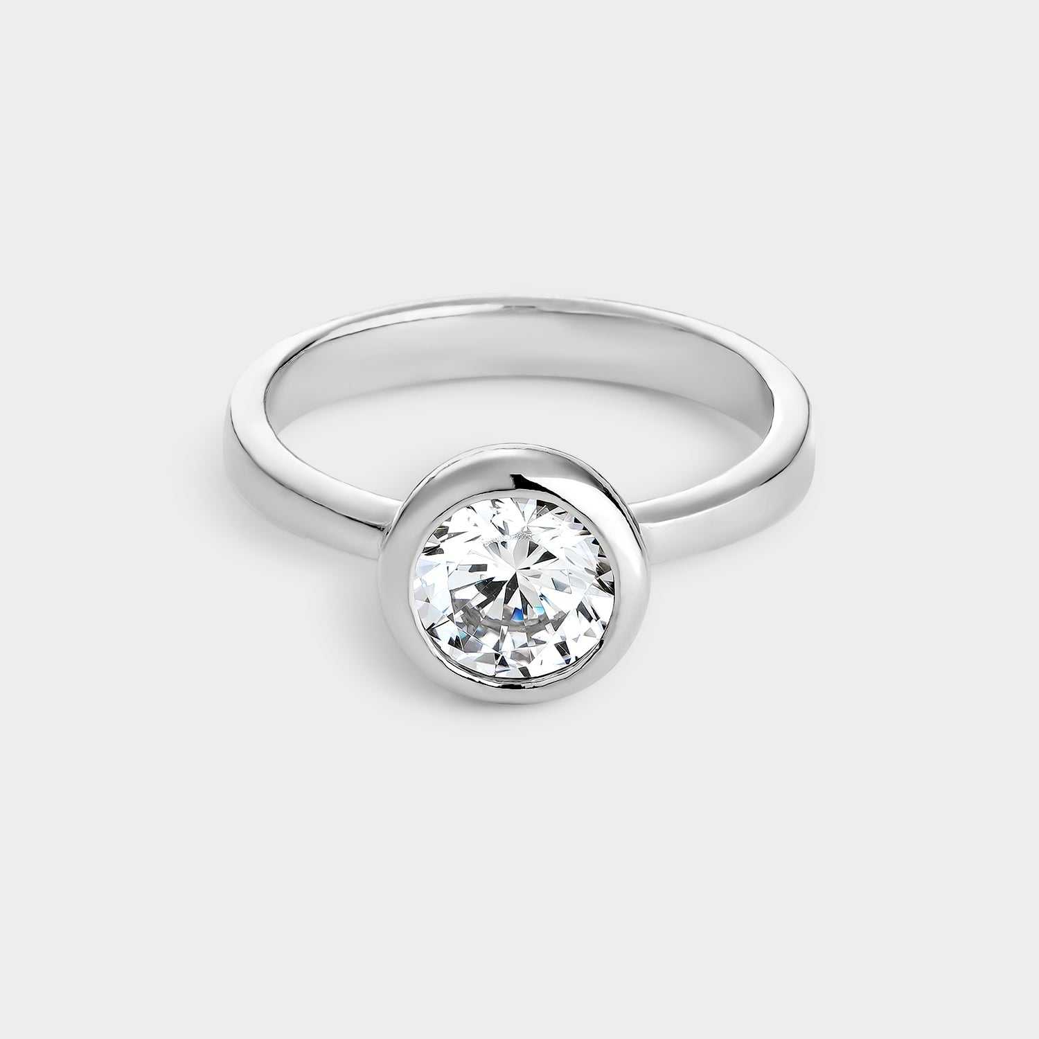 Anillo solitario de plata con circonita de 7 mm engastada en bisel