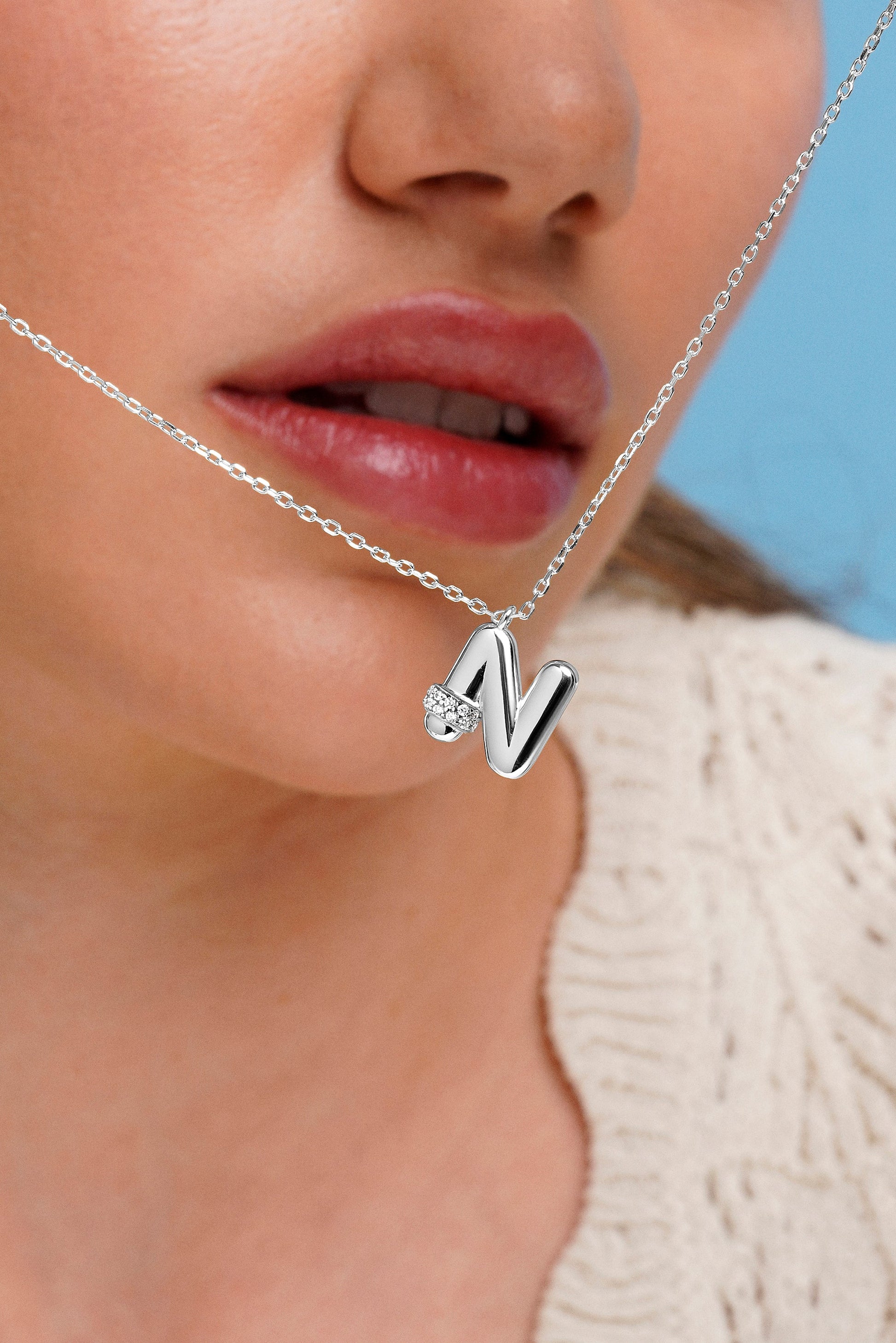 Collar con inicial "N" con volumen, plata y linea de circonitas