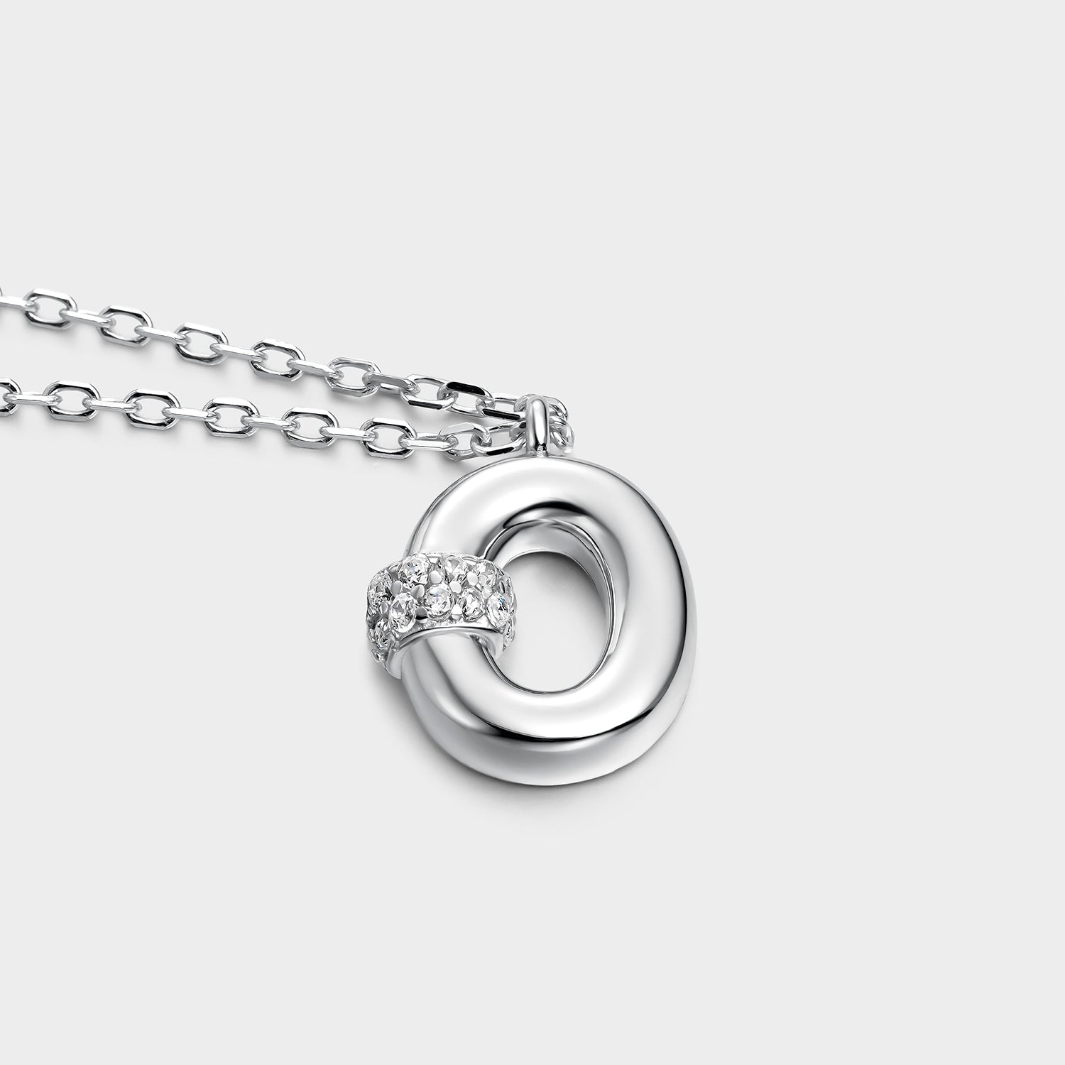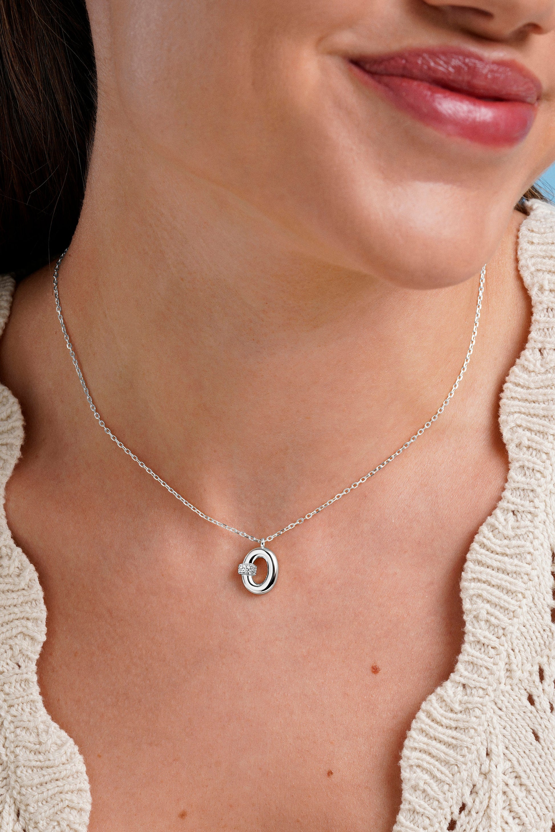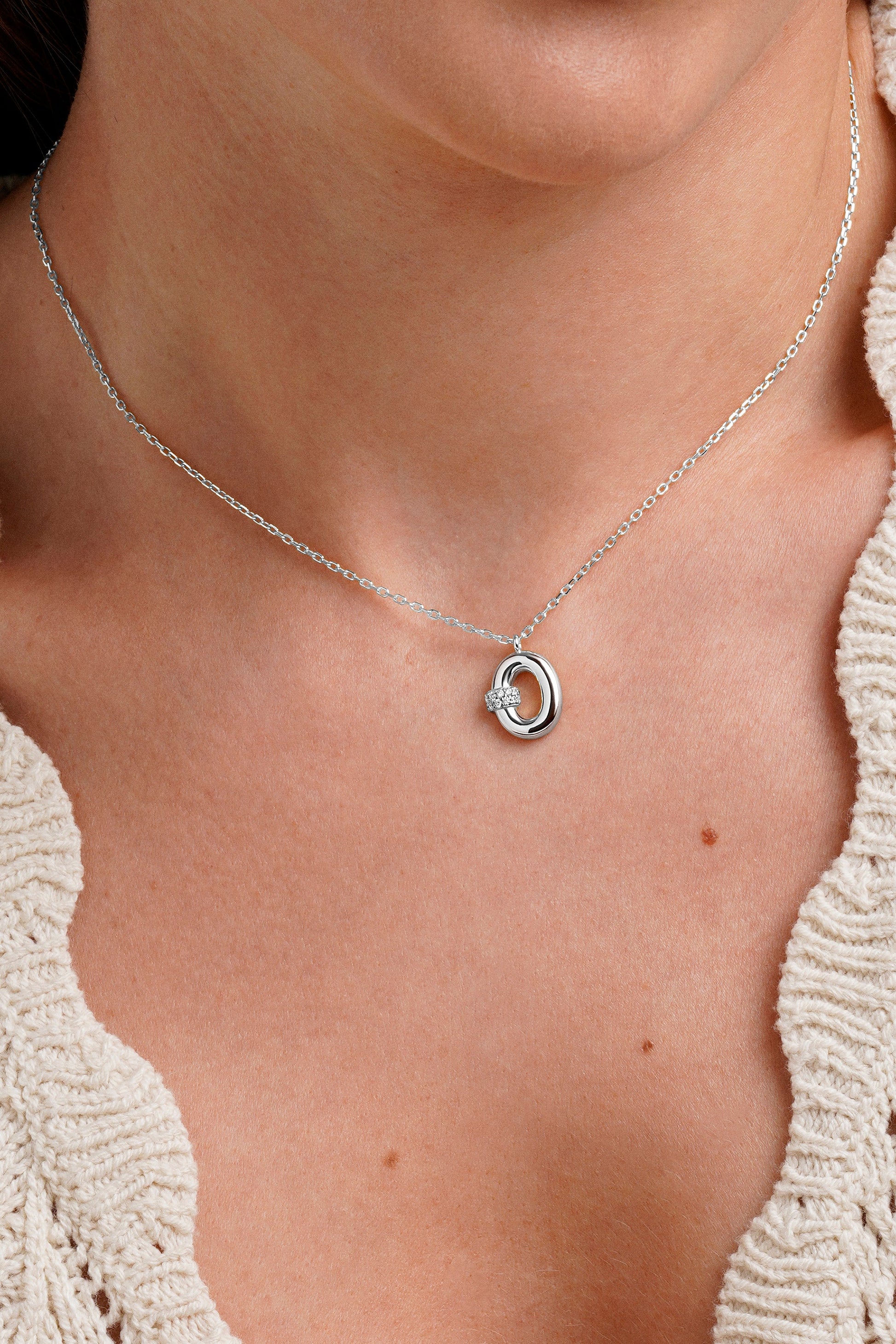 Collar con inicial "O" con volumen, plata y linea de circonitas