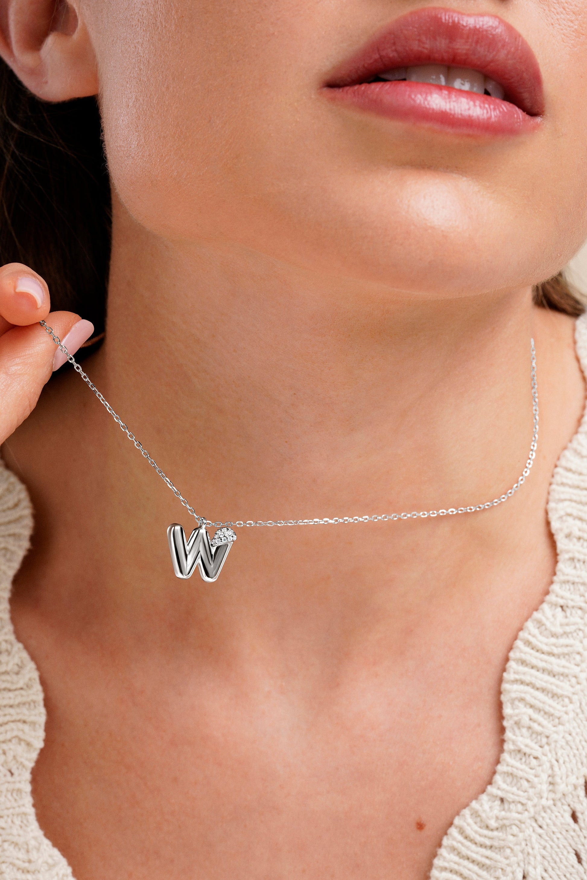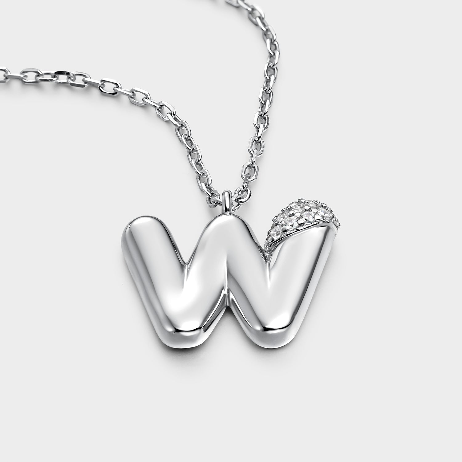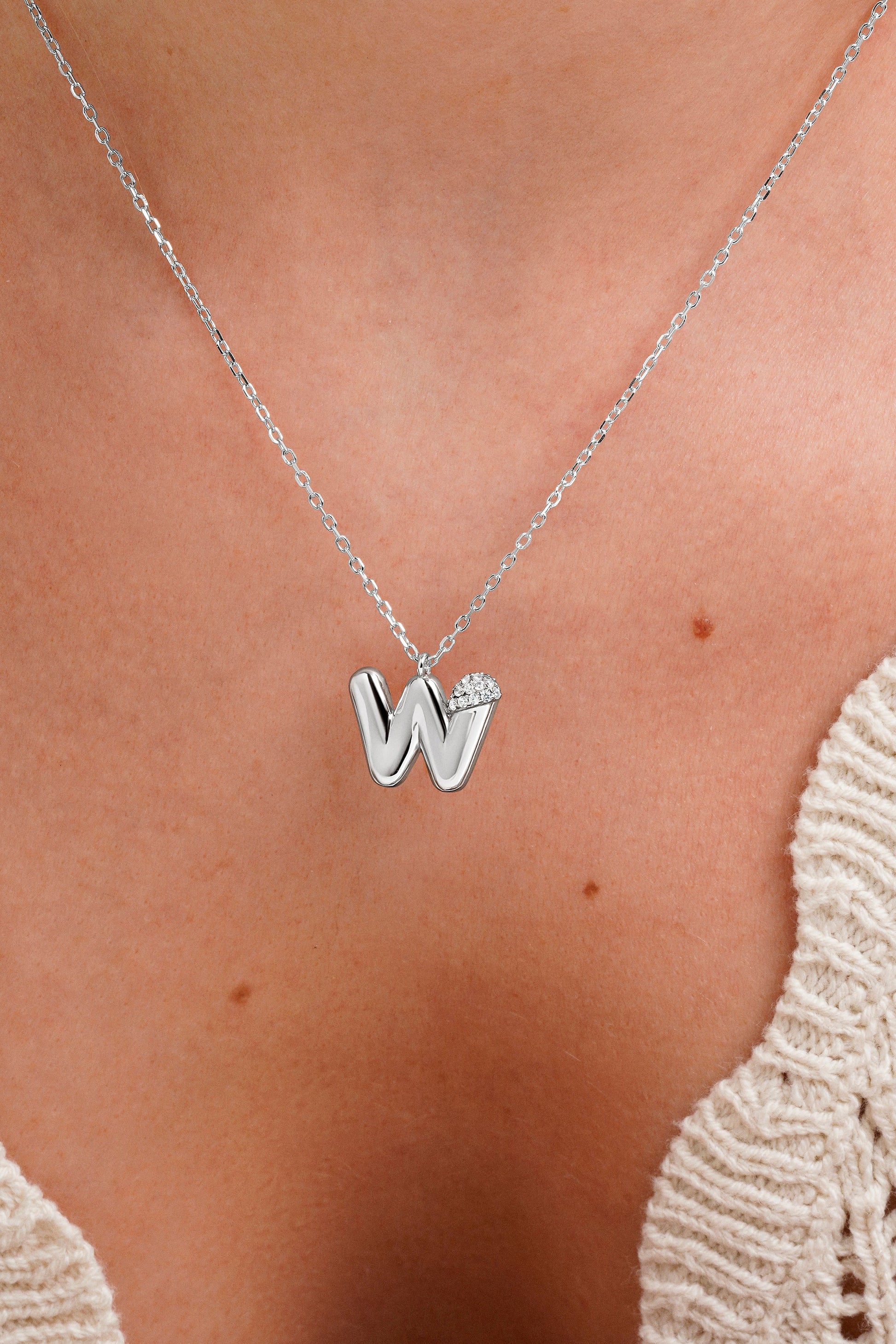 Collar con inicial "W" con volumen, plata y linea de circonitas