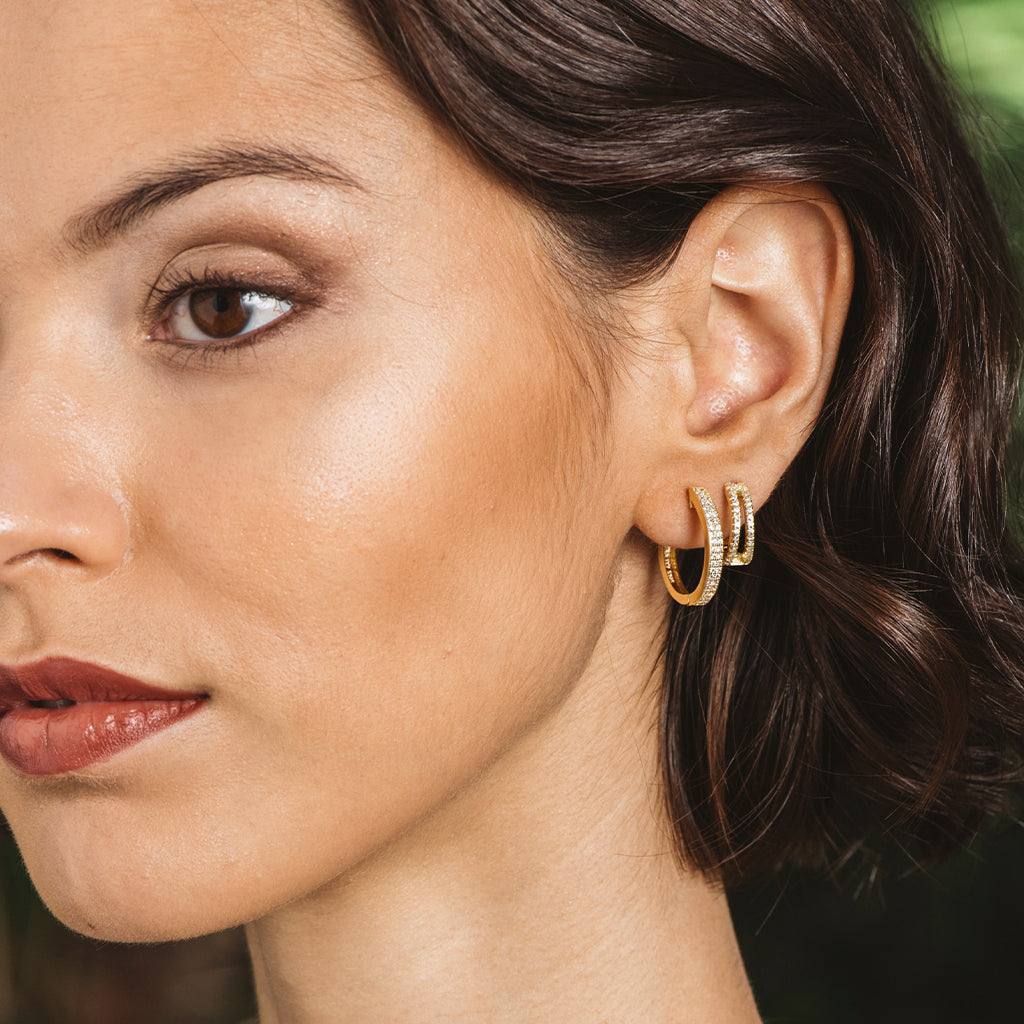 Los pendientes criolla de plata bañada en oro con dos filas de circonitas son una pieza de joyería elegante y sofisticada. Su diseño clásico y atemporal los hace versátiles y fáciles de combinar con cualquier outfit. Están bañados en oro amarillo de alta calidad para garantizar su durabilidad y resistencia. Las circonitas cuidadosamente engastadas en el aro crean un efecto deslumbrante y elegante. Son perfectos para cualquier ocasión y vienen en una caja de regalo elegante.