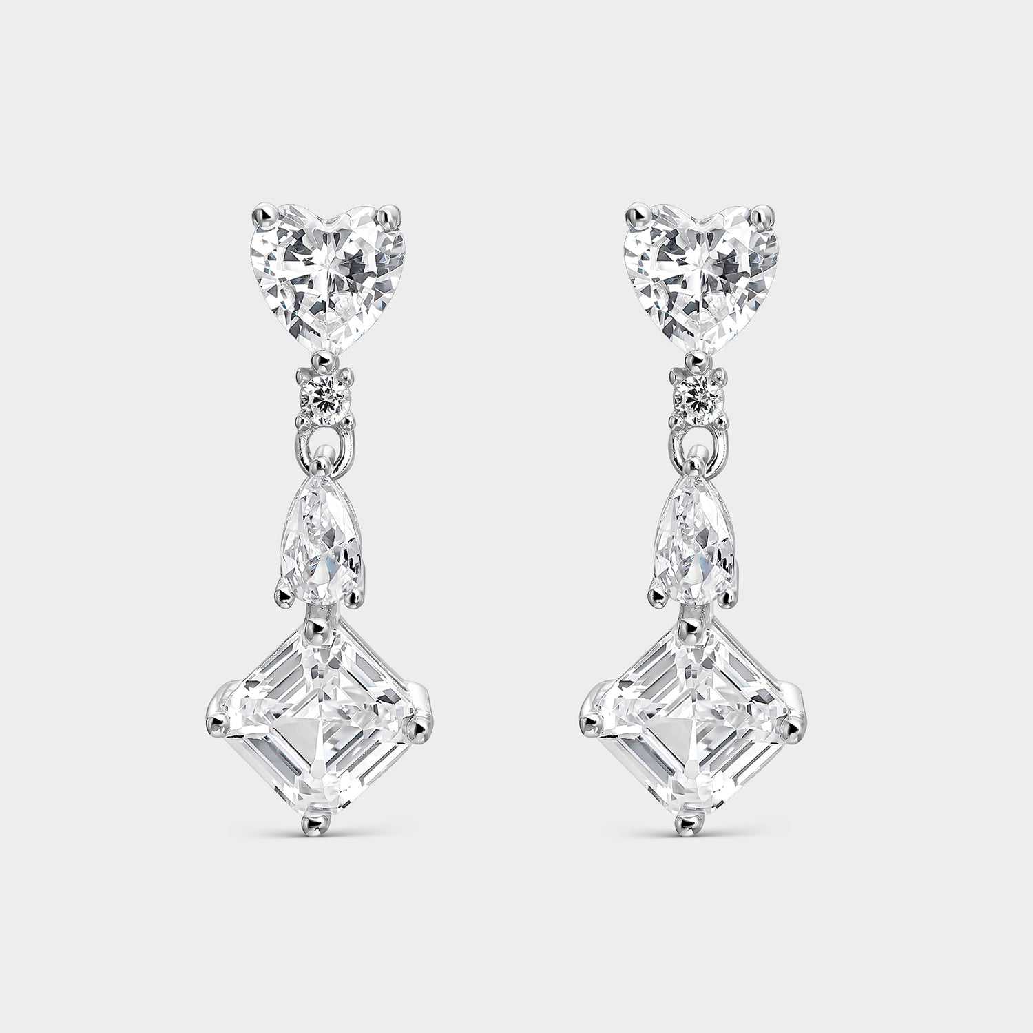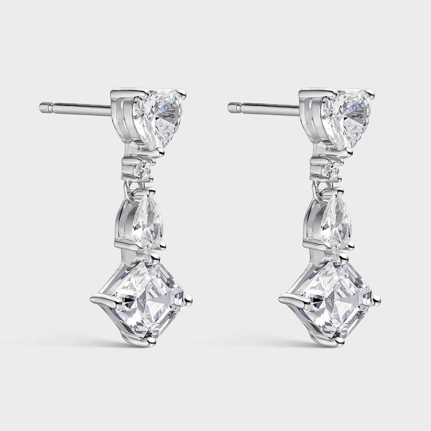 Los pendientes de plata con circonitas blancas asimétricas son elegantes y sofisticados. Diseñados con circonitas blancas de distintos tamaños y formas, engastadas en 3 y 4 garras para crear un efecto moderno. La plata de alta calidad y durabilidad garantiza su brillo y belleza a largo plazo. Perfectos para cualquier ocasión, destacan con su diseño asimétrico y llaman la atención. Una elección imprescindible para amantes de la joyería de alta calidad.