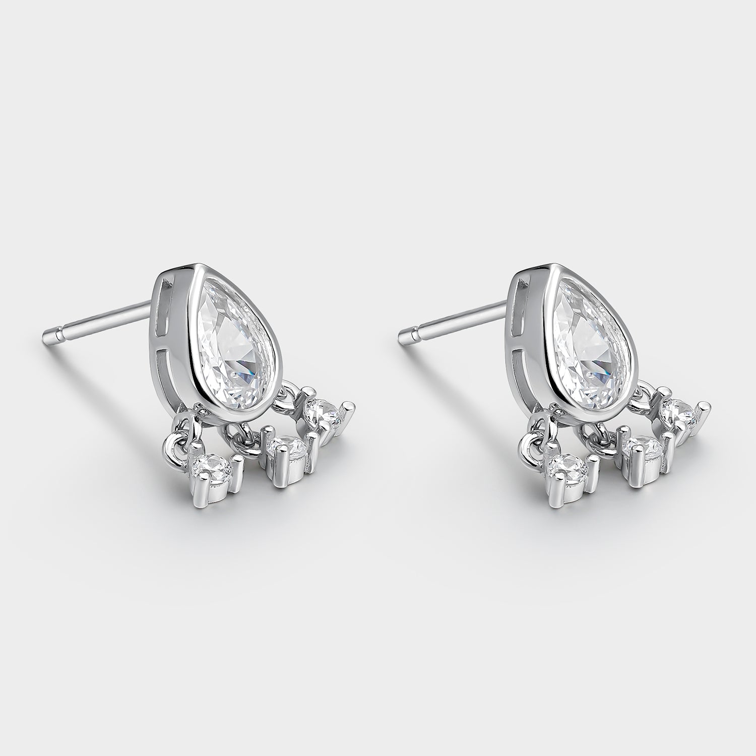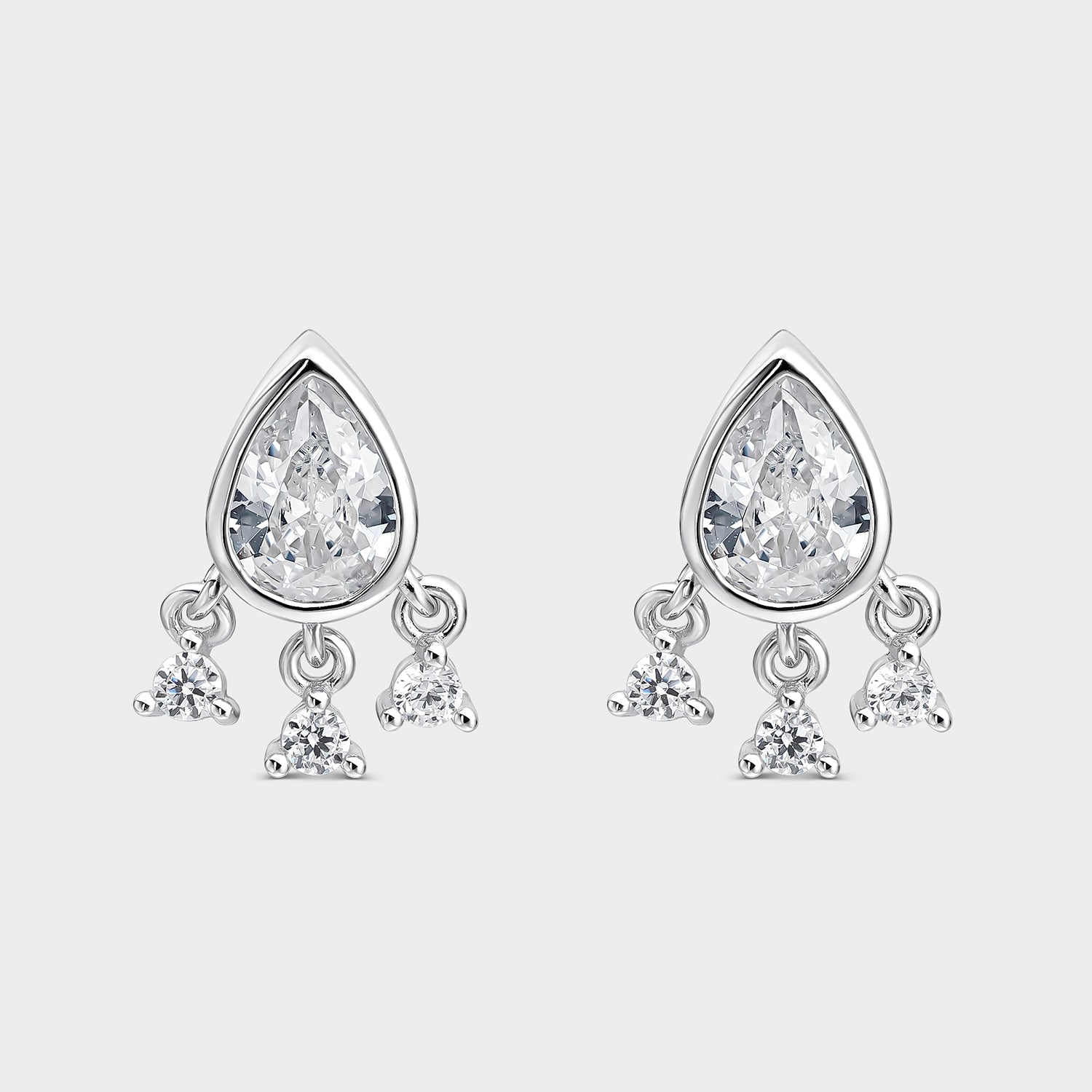 Pendientes en Plata de Ley 925 y circonitas en forma de gota con tres colgantes triangulares.
