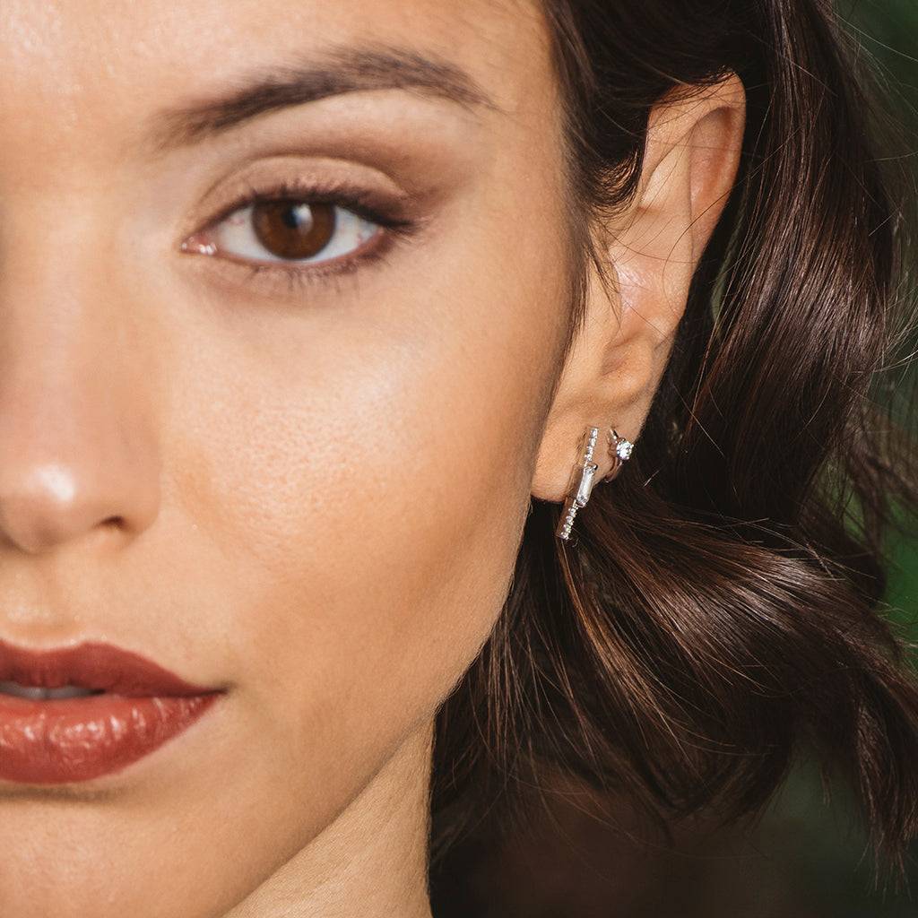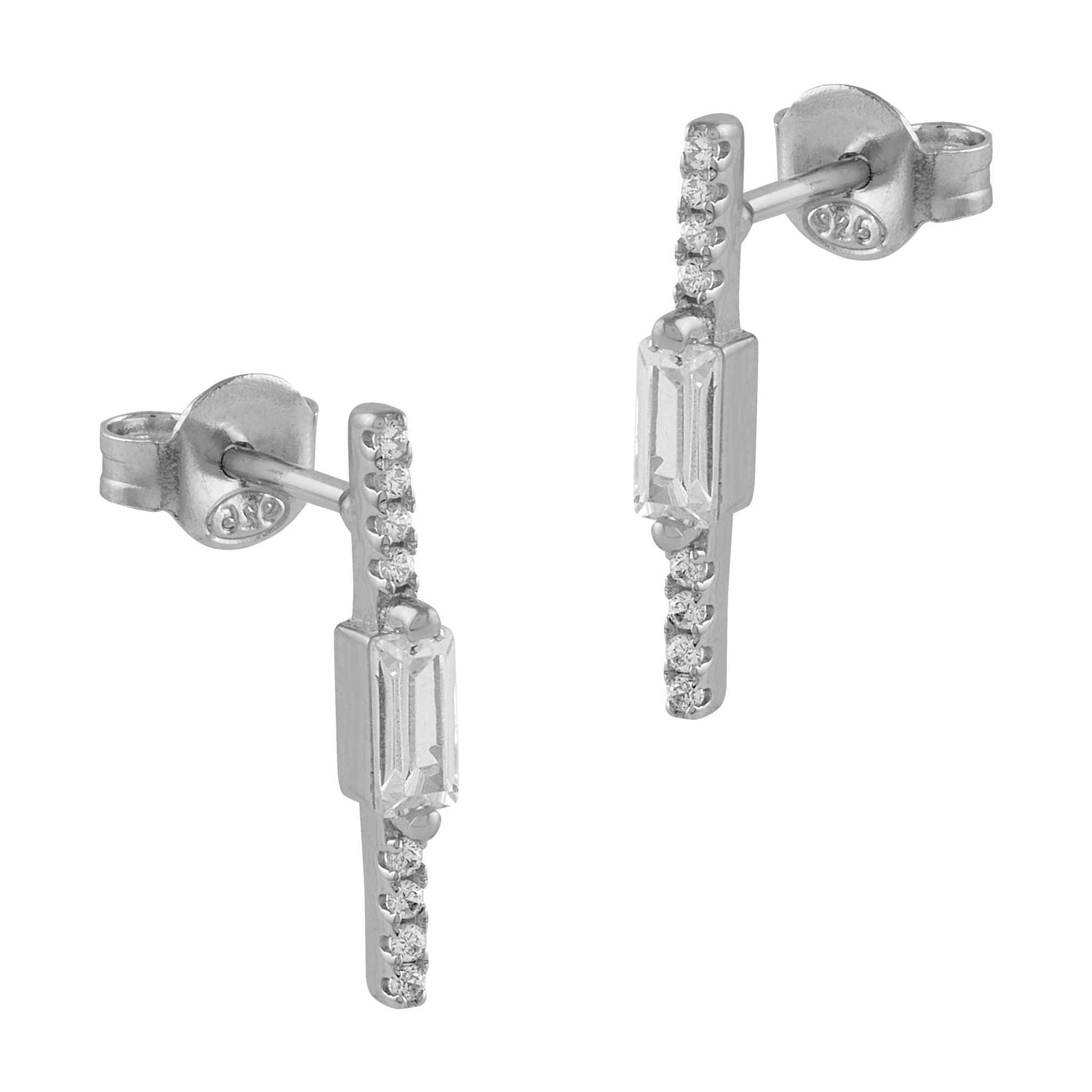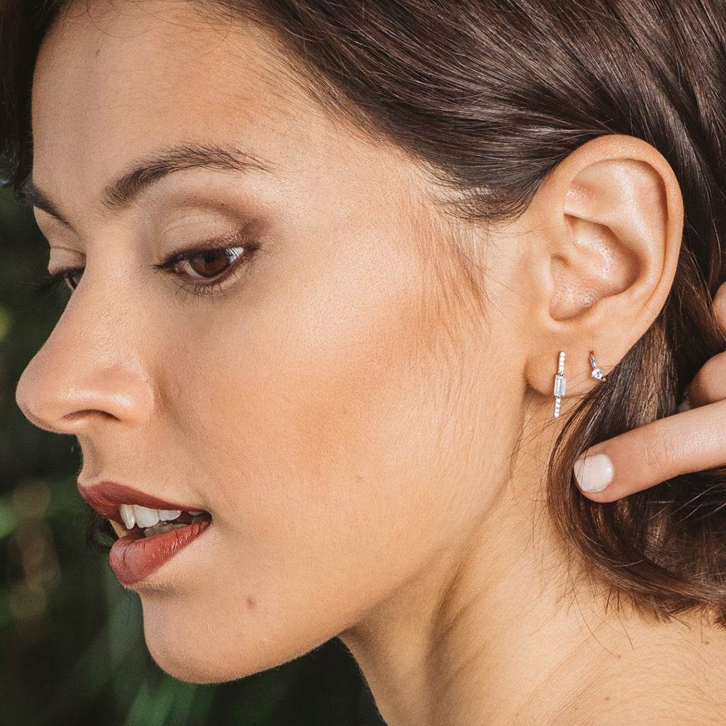 Pendientes de plata y circonitas en fila