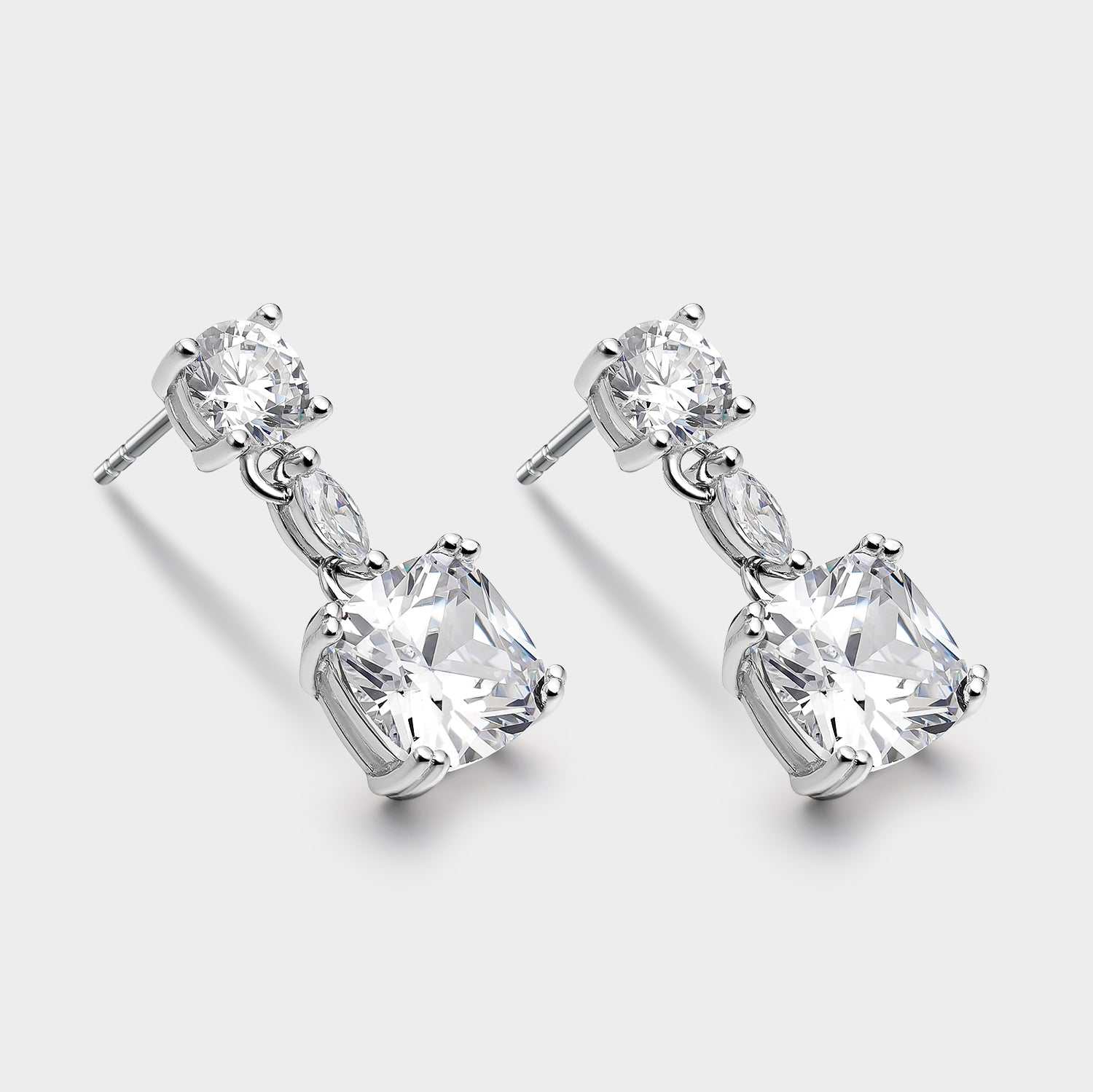 Estos pendientes de plata con circonitas blancas engastadas en 4 garras son elegantes y sofisticados. La circonita blanca cuadrada en el centro brilla con un brillo impresionante, mientras que la plata de ley 925 le da elegancia y durabilidad. Ideales para cualquier ocasión, su diseño clásico y atemporal combina con cualquier atuendo. El colgante a juego crea un conjunto de joyas impresionante. Viene en una caja de regalo elegante, perfecto como regalo para alguien especial.