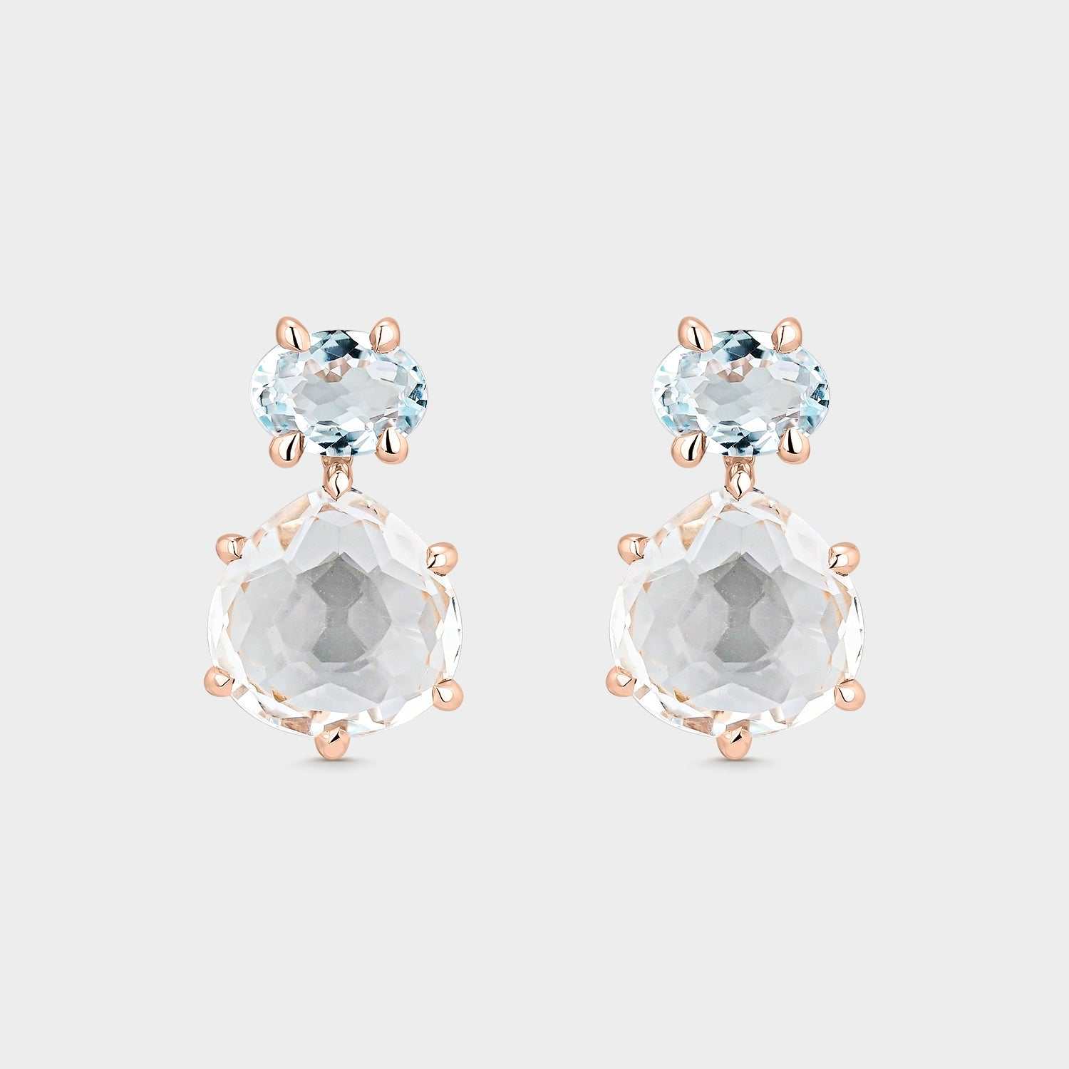 Los Pendientes Balarama son una pieza única y elegante que no puede faltar en tu colección de joyas. Están hechos de plata con un baño de oro rosa que les da un brillo incomparable. Además, cuentan con topacio azul y cristal de roca para añadir un toque de color y brillo extra. Inspirados en la cultura india, estos pendientes son ideales para cualquier ocasión y fáciles de combinar con cualquier outfit. ¡No te arrepentirás de tenerlos en tu colección de joyas!