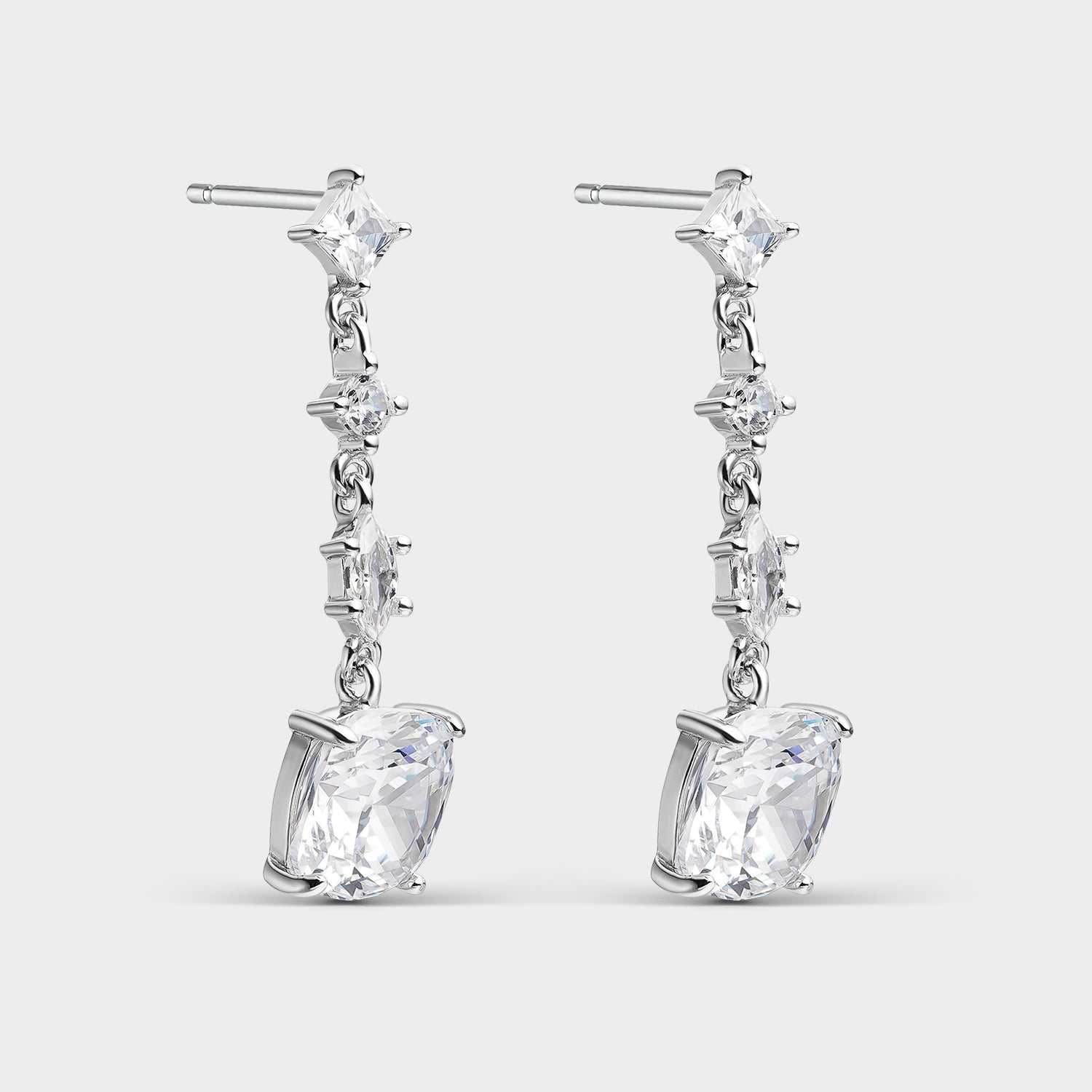 Estos pendientes largos de plata con circonitas blancas son elegantes y sofisticados. Su diseño clásico y atemporal los hace ideales para cualquier ocasión. Además, la plata de alta calidad garantiza su durabilidad. Con distintos tamaños de circonitas blancas, le dan un toque de brillo y luminosidad a tu look. No te arrepentirás de tenerlos en tu colección de joyas.