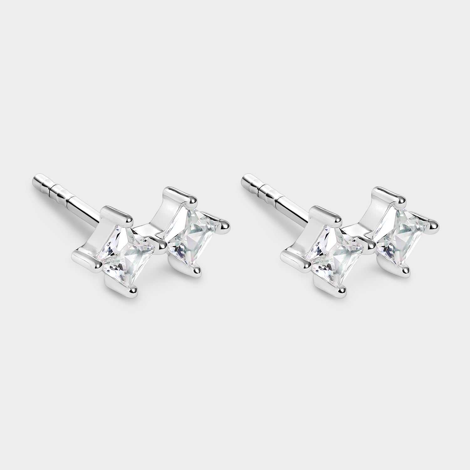 Estos pendientes de plata de alta calidad cuentan con dos circonitas blancas en forma de rombo, engastadas en 4 garras para mayor seguridad. Su diseño elegante y sofisticado los convierte en el complemento perfecto para cualquier outfit. La plata de alta calidad y el baño de oro de 18K garantizan su brillo y resistencia. Ya sea para regalar o consentirte, estos pendientes son una excelente opción versátil y atemporal.